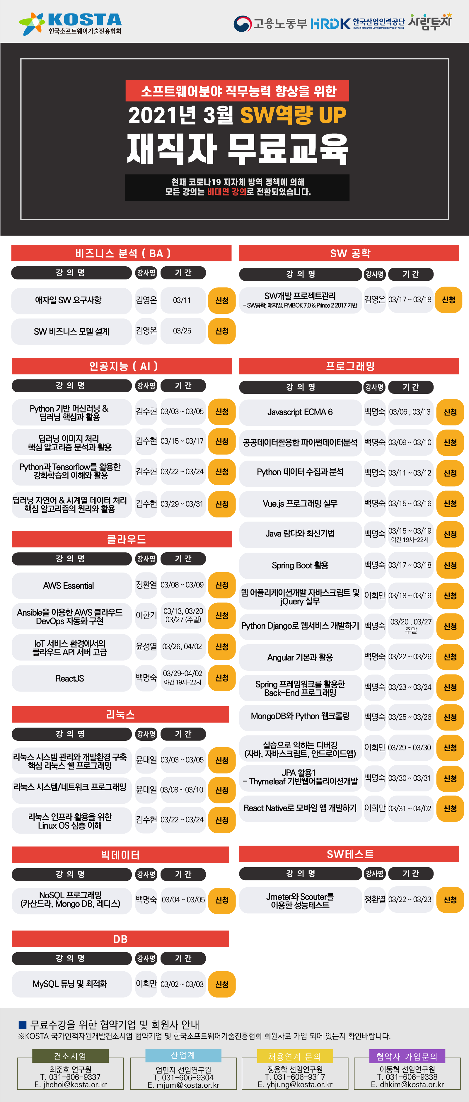 | 2021년도 1월 직장인(재직자) 대상 SW교육과정 안내 (0) | 2021.10.21 |