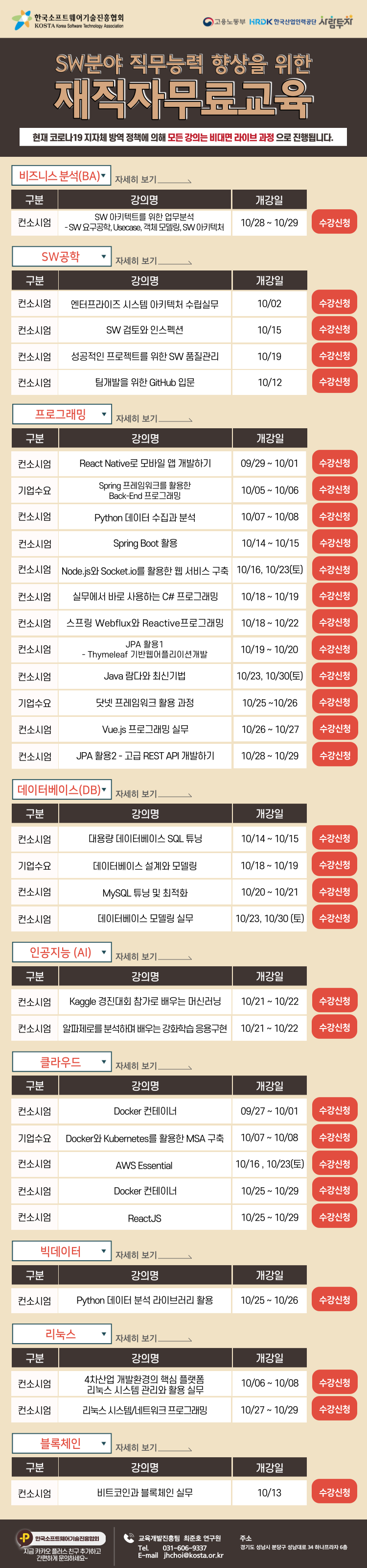 2021년도 10월 직장인(재직자) 대상 SW교육과정 안내